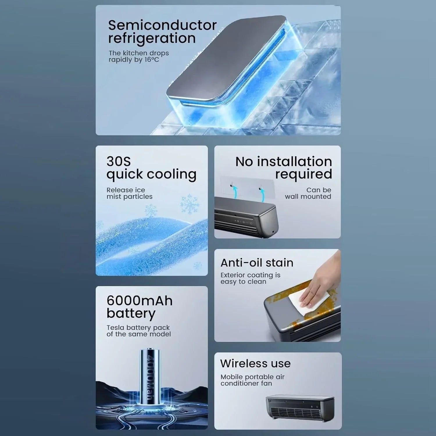 Experience fast, efficient cooling with this portable, wall-mounted air conditioner fan featuring Type-C charging and instant cooling. Its whisper-quiet motor and flexible no-drill installation suit any home or office space. Perfect for maintaining fresh, cool air wherever you need it.